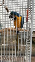 She’s macaw (gold and blue) one year old. Her name is Disney.
