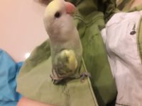 Mainly green, tint of yellow and blue. A darker nail on his left claw.