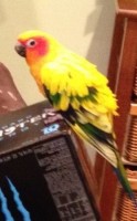 Sunny was never let out of her/his cage for years, his owner have him/her only fruit loops apples and seed