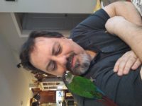 He has two “patches of maroon” on his belly rather than a single large one. His wings had not fully grown out (they look “thin” in flight) and he has 1/2 his tail feathers. He is barely a year old, and answers to Marklar. He’s bold but friendly, and may be very lonely.