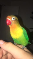 kiwi is 6 months old, he was free flying outside and got spooked, after calling him from under the tree a couple crows started perching on the tree (the biggest tree in my complex) and after that i lost site of him and i would call him and he wouldn’t call back so i went inside after an hour of no signs of him and it started raining hard. Kiwi is mostly trained but won’t listen sometimes. He’s green, with a yellow crop, and an orange/ blackish orange head, a little bit of blue on the tail and a bright red beak. He’s my only bird please contact me if seen.