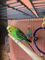 My parakeet has a yellow head and green body with black and white wings. He is very calm and sings very beautifully. He tends to be alone even if there are other parakeets in the same cage. I’m sorry he flew away.