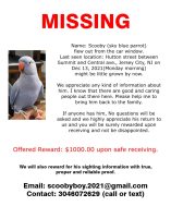 I am pretty sure he is a male but could be female because our baby was very young when he/she went missing. He is very curious and likes to land on head or shoulder for any new people so I am sure he must have landed on someone when he flew out. The reward will be given on safe return with no questions asked OR I can help you to buy a new bird for you. We miss his siren whistle and his singing.