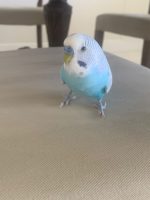Escaped out of cage. Very friendly. Light blue, grey winged.