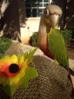 Pistol is not very friendly. He does know “up” so if you find him you can put out a wooden spoon and say up and he should get on it. He love peanuts. He can also say “I love you”