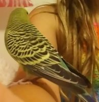 He is green/yellow with a bit of blue in his tail. He is a support pet for my daughter so he is used to being handled, but is shy with strangers. His name is Spring.