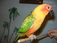 He’s very friendly, loves people. Flew off my shoulder in the yard.