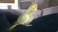 Pearl cockatiel with missing front toe on left foot . very sweet. She escaped a few weeks ago and we miss her terribly.