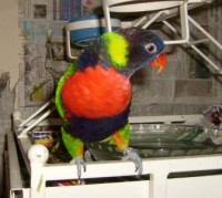 Our Rainbow Lorikeet Baby escaped on Thursday January 26 early morning through our decks sliding glass door and flew towards HMart (260 Bergen Tpke Little Ferry, NJ 07643). I have looked all over the surrounding area with no luck. If found please call 201-853-9774.