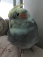 He is a bit bitey, but is a sweet, tame bird who will go on your finger. He really likes seed and millet and doesn’t have clipped wings. Also please try to grab him in a net or thin blanket/jacket/etc. He has a band too, but I don’t know the number.