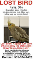 she’s very human friendly, any sightings or information could be super helpful to bringing ollie home! she’s our baby!