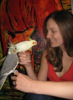 Very sweet, tame and friendly. Yellow feathers on her neck in the shape of a happy face.