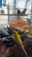 Sooo… the cats were playing outside the aviary, like they always do, patting at the birdlets and getting all excited about the flutter of little wings… and someone patted the latch and flipped it open… my roommate came in this morning screaming about a parakeet on the front porch and how Tippy, the cat, was trying to get it, “Come help!” So, I went out in my pajamas and no cat or parakeet to be found. I then had a sudden suspicion, and ran to my aviary, and door wide open. Four parakeets inside, one flying in the larger enclosure who I manage to scoop up and toss into aviary. So now I have five left. Out of seventeen. I’m so sad. I can see them flying around the neighborhood, and spent all morning shaking the food bowl for them, but can’t manage to lure them down. As you can see from photos, they are kinda tame, or at least, not afraid of humans.