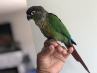 Very friendly, loved soda cans, seeds, perched, will step up or kiss back if you call him and make kissing noises. Not a good flyer