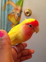 Red Headed Yellow body lovebird —–November 13, 2015, my baby love bird accidentally flew away. He was on my sister back cling on to her, my sister didn’t notice until she swung her pursue onto her shoulder walking out the building and scared to bird. She made multiple attempts to catch her, however failed. My lovebird is more than a bird she grew to us and we would really love her back. She is 11months soon to be a year on November 25th. Piojo (her name), was last seen on 24 Elliot Place in Bronx near the intersection of Walton and Jerome. She is approximately 13–15 cm; 43–47 g. Head red with pink/yellowish bill and white eye-ring; breast yellow extending as collar onto nape; belly, wings and tail yellow, all but central yellow. The right side of Piojo’s beak is chipped from birth and majority if the time has a piece of feather sticking up into of his head like a Mohawk. Please if anyone finds her, please call/text/email me. My mother is very sadden by this.