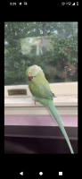 My bird phoenix is a all blue Indian ringneck parrot with a red beak and red band.