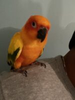 He’s very good with humans he respond to mango he loves fruit would bite if he doesn’t know you. Last number on band I believe is 2