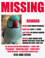 📌 Lost Indian Ringneck Parrot