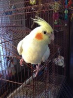 Yellow/white bird with orange cheeks and red eyes. Very Sweet. Will answer to her name. HELP!