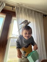 Hatched in September 2022. Finally got his flight feathers. Free flys in our house. When I went to let him out of his room this morning he was not there. Have no idea how he could have gotten out. He is very friendly and likes to sit on people’s head or shoulders. He is banded will supply band number if found. (Assuming I can get the full number from his breeder, I can’t find my paper with it listed.) please bring him home to us he is a beloved member of our family.