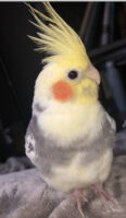 This cute little bird named hunny escaped around 6:30 pm on 4/3/21 and has not been seen for 2 days he has orange dots on his face is gray on the back is yellow ish everywhere else and has some whit spots it likes crushed cereal, mirrors, bird candy.
