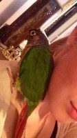 Ruby is a /very/ friendly little bird. She will land on anyone that gets close to her. She loves to be around people. She is still young so she’s not that big (less than six inches). Any sort of help finding her would be amazing! $75 DOLLAR REWARD (that’s all I can afford, I’m just a broke college kid)