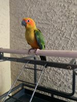 My baby Sun Conure flew off from my dad’s arm yesterday afternoon. He’s extremely friendly, might go up to just anyone. His name is Mango but goes by “Mangi” or “Pitin”. Please if anyone has seen him, do not hesitate is contacting me at any time. My heart is completely shattered & I’m worried sick about him since it’s raining & windy. 305-842-7444. // He was last seen in Miami between Sw 31 St & Sw 117th Court. I’m willing to give a reward!
