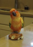 Birdie is a male sun conure last see in Skokie around Crawford/Dempster. Found twice, but up in 6-100ft trees in alleys with power lines. Cherry picker wouldn’t come because of power lines. I expect he would fly away from strangers. Although friendly with family. I call “Birdie” and also have a song I would sing to him with each line ending with a AUK, AUK trying to sound like his scream. He has no leg band the vet removed as too tight, but I have it. Loves red grapes and bread. Reward.