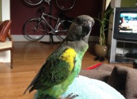 We accidentally left the door open and our parrot flew out. We live on SE 13th and Madison. I’s a very freindly Meyers parrot that goes by “birdie” or “bird”