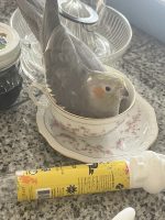 Born May 15th, 2017, we had her from she was laid as an egg. We also nicknamed her “Houdini” since she can let her self out of any cage that isn’t locked. She usually stays out of the cage unless to sleep. Very active bird. Beautiful dark black with some yellow and white. Bright orange cheeks.