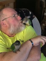 Gizmo and squirt both few put of house. Both green cheek conure. Gizmo is with black head squirt os the light colored. They are 18 moths old.