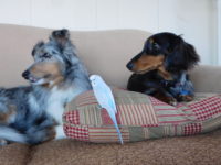 Boo talks and whistles. Usually answers if you whistle. He has no black banding on the ends of his wing feathers. He has a very purple ‘nose’.