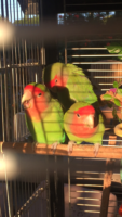 This lovebird is part of a small family/flock of 5 lovebirds so he/she is not actually a pet or used to being handled.