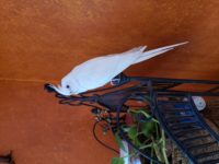 Tame Albino cockatiel. It is used to human contact but only family so I’m not too sure about strangers.