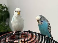 Pearly is white budgie and Blue one with little white around neck & head is Pluto