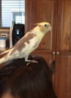 He can sing “La Cucaracha”, “Cielito Lindo“ and “The Adams Family.” He blows kisses and can say “hi baby bird.” He cat calls and has a very elaborate whistle. Loves curly hair.