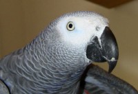 Ajax is a 2 1/2 year old african grey parrot. He isn’t clipped, but only has partial flight feathers on his right wing. He is friendly and should step up for people.