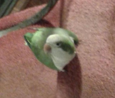 20131222_131734Bright green quaker parrot/into lite green/with blue tipped wings. Name is Baby.
