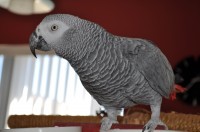 Simon is an 8 yr old African Grey. He is very friendly, talks alot, responds to Romeo sometimes also (cats name). He says “Hello, this is Ryan” if a phone rings usually and will make noises almost constantly while you are on the phone. He calls the cats by making a ssspt sound when you say Romeo and calls the other cat Baby Girl.