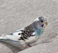 Sky is blue and white beautiful female parakeet. She is timid. She didn’t like to touch her but from far if someone talk with her she is fine.