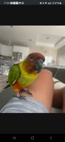 This is a beautiful conure parrot. He is my beloved bird that I had for half a year. I let him outside his cage, but forgot to close the house door, so he flew away. I will be grateful if anyone finds him. Any information will help. Please let me know if you find him or see him.