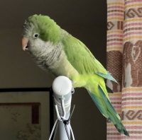 Green quaker parrot with band on right leg. Words he says: hello, what’s up, oki-doki, sleepy. Lost on NE 61st St Oakland Park, Fl 33334