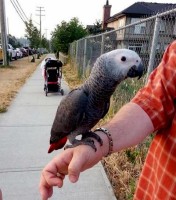 She’s a baby african grey and got out last night and flew away close to 150th and 59a ave her name is Sonia and should be fed banana and blueberry asap if found then call me at 604 809 5218