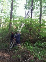 Heard the little guy calling to me from the back woods. Climbed up ladder and he stepped onto my head and I walked him straight back to the house:-) Thank you.