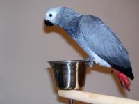 Yesterday was its first flight ever. Baby just finished growing out its feathers, and still had some down left. I was still feeding it 2 – 3 times a day using baby formula and syringe. Today we saw it fly from one tree to the top of another on Canfield near Glenlake. We kept vigil for over 4 hours, coaxing it to come down and eat. I believe it was trying to fly down to the lawn, when it got spooked and made a big circle around the neighborhood. My husband said he saw a hawk/falcon following it. My daughter said she saw the hawk land in a different tree, and Baby Grey went the other way, heading north/west. Baby is very timid, and afraid. Looks like most African Greys: powdery grey feathers with a cherry red tail. Eyes are still all black.