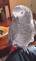 Allie is an African Grey Congo. Grey with a red tail. See photo. He talks, mostly he’ll say “hello” and when he wants attention he will use a constant whistle and will say “excuse me!”. He is not banded and not chipped. He flew away from us and we haven’t been able to locate him. He’s somewhere in the Moorestown/Maple Shade N.J. area when last seen. Please contact us if you find him, he’s been with us for ten years.