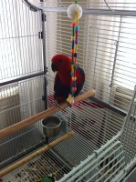 She is very friendly, red and blue with blue around the eyes, she is 4 years old. Please help us find her, she is our baby.