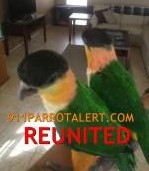 Mischief is a Black Headed Caique, young apron. 7-8 months old, hasn’t molted yet, still has many yellowish white belly feathers. knows how to whistle many tunes. stolen off back porch,