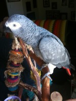 Kiki has a mangled rear toe on the left and 2 toes mangled on the right from where her mom bit her toes in the nest (I think that is the correct sides) She is very friendly and whistles Charge and the Andy Griffith Theme. She was flying north from Washington and Lucky Boy Drive last I saw her. I lost track of where she went as I ran thru the house for the front door and so don’t know where she flew to. She is hand raised and used to other birds next to her in their cages.