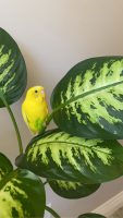 yellow parakeet may not come onto hand will respond if play parakeet sounds on youtube